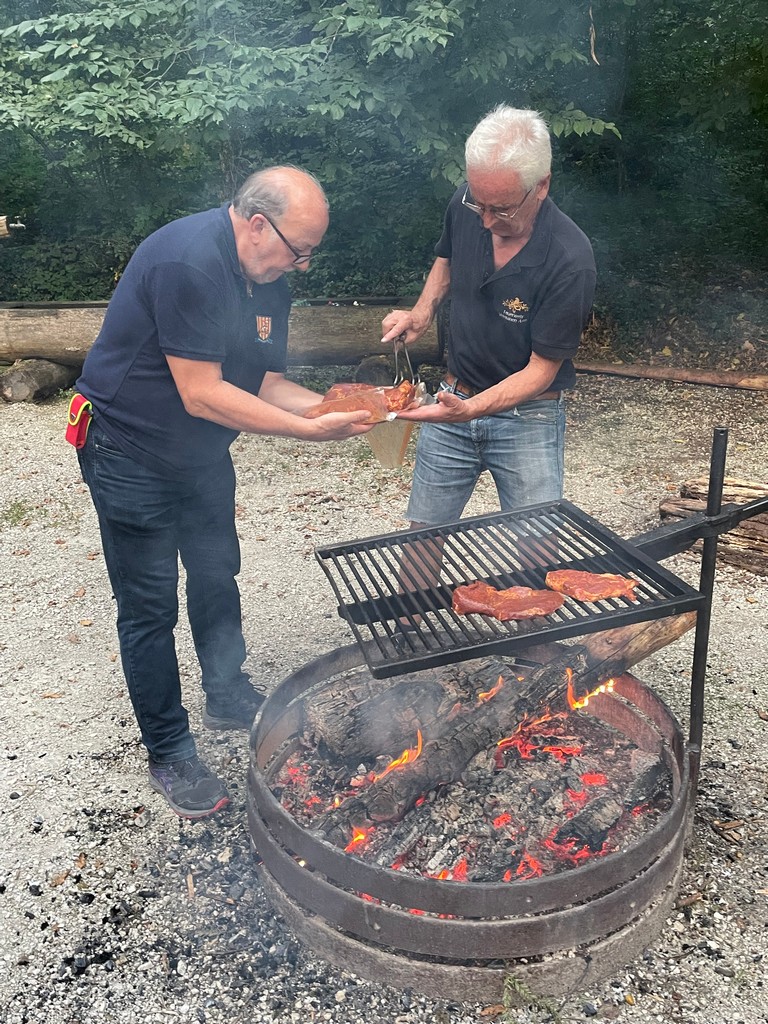 Da der Feuerwehrmarsch auf den ersten Samstag im Monat fiel, üblicherweise unser Veteranenhöck-Tag, planten wir den Veteranenhöck auf einen Wochentag in den Abendstunden. Hanspi informiert noch via Whatsapp, dass nun der Sommer da sei und es etwas vom Grill gäbe.