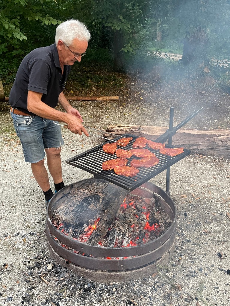 Auch dieses Jahr bildete der Kotelett-Höck den Abschluss der Sommeraktivitäten. Dank der perfekten Organisation von Hanspeter, der wie gewohnt an alles gedacht hatte – vom prall gefüllten Kühlschrank über die kühlen Getränke bis hin zur idealen Glut zum Bräteln – stand einem gemütlichen Abend nichts im Wege.